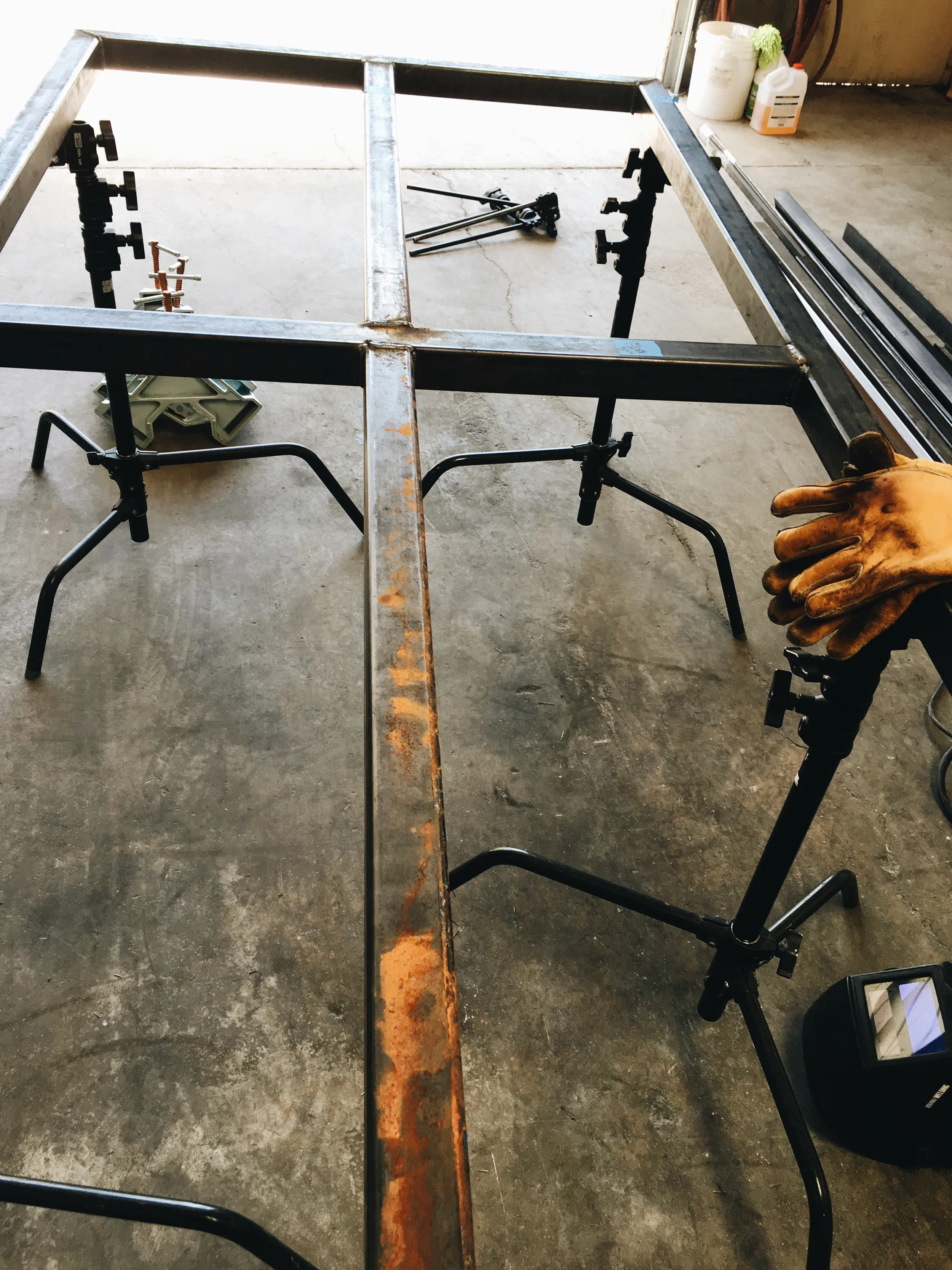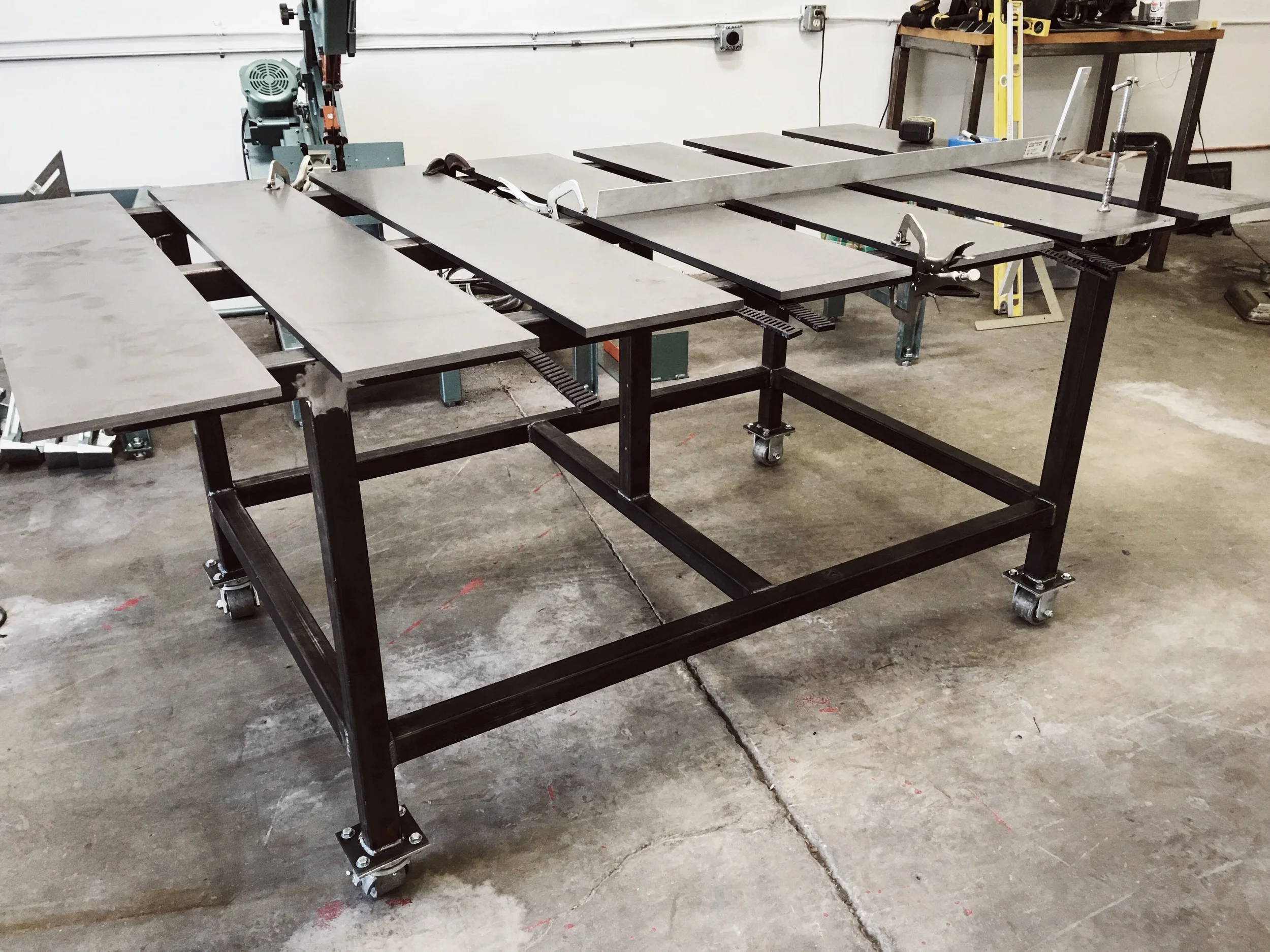 Trevor and Audrey are testing out the feel of this custom bar (in progress!).
